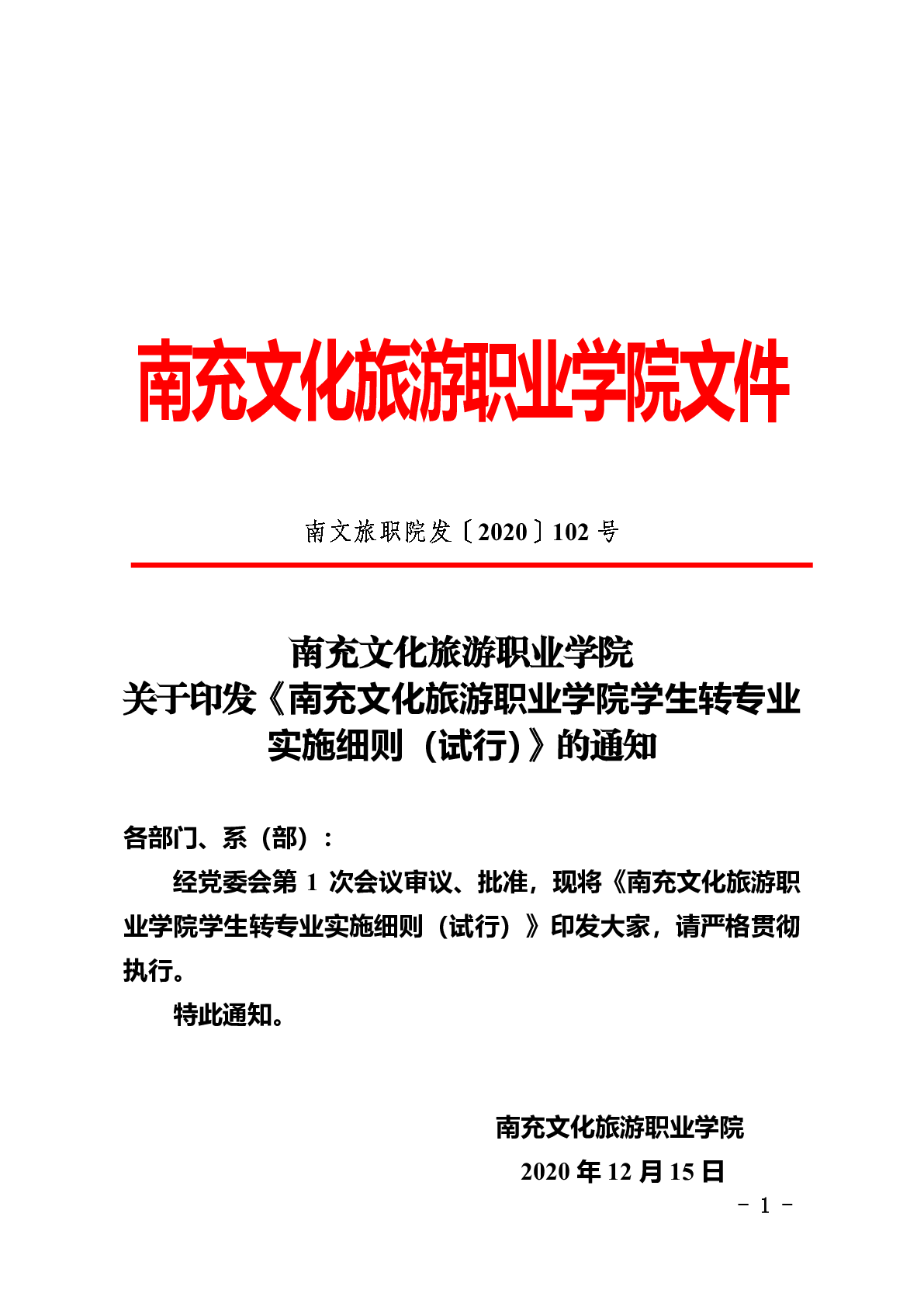 南充文化旅游职业学院 关于印发《南充文化旅游职业学院学生转学 实施细则(试行)》的...