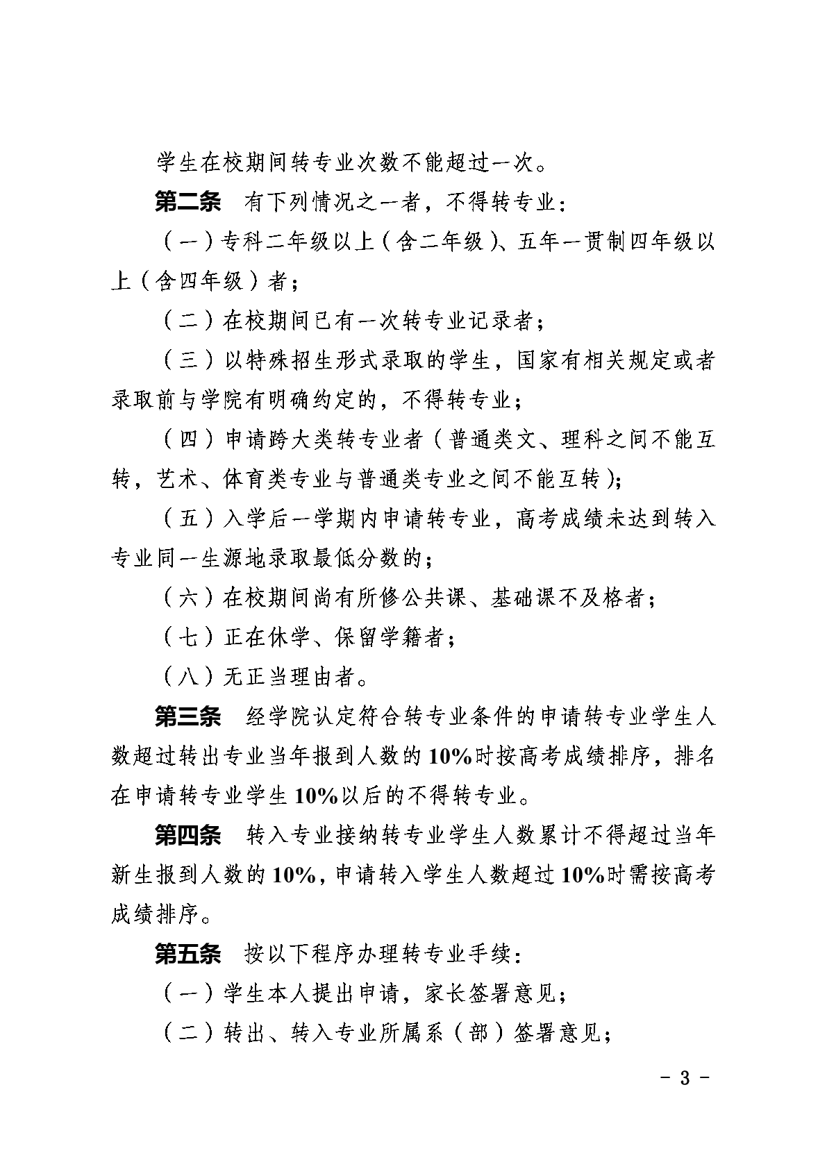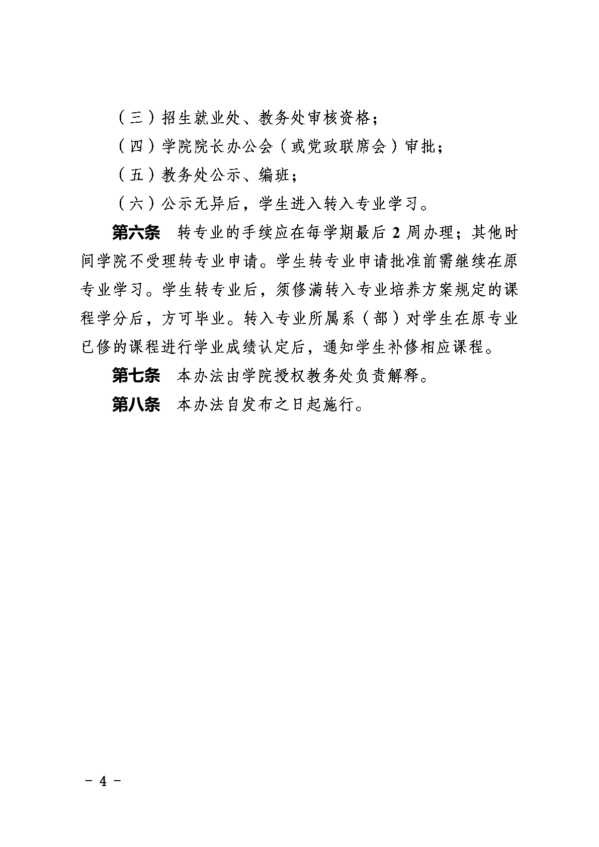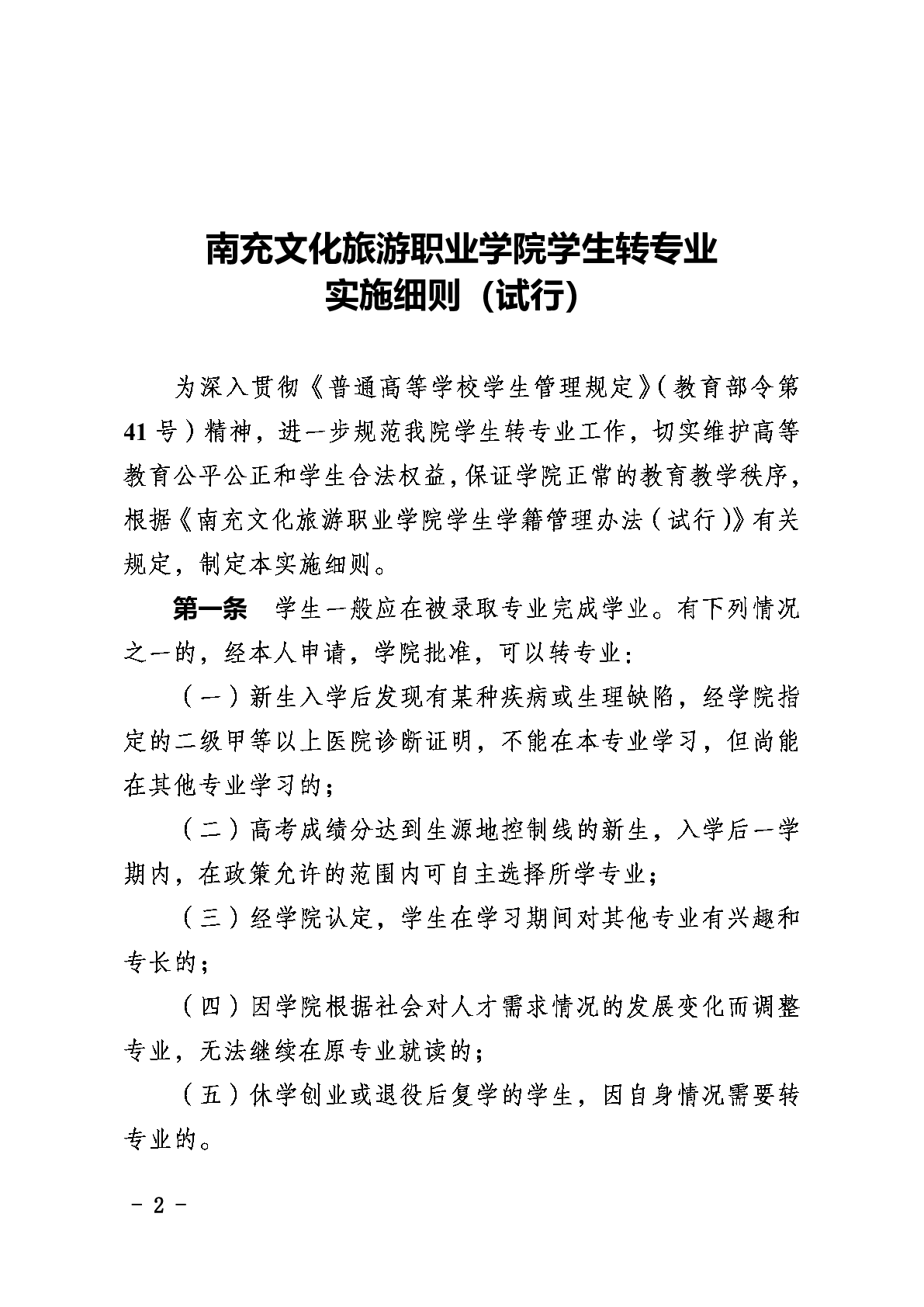 南充文化旅游职业学院学生转专业实施细则(试行)的通知