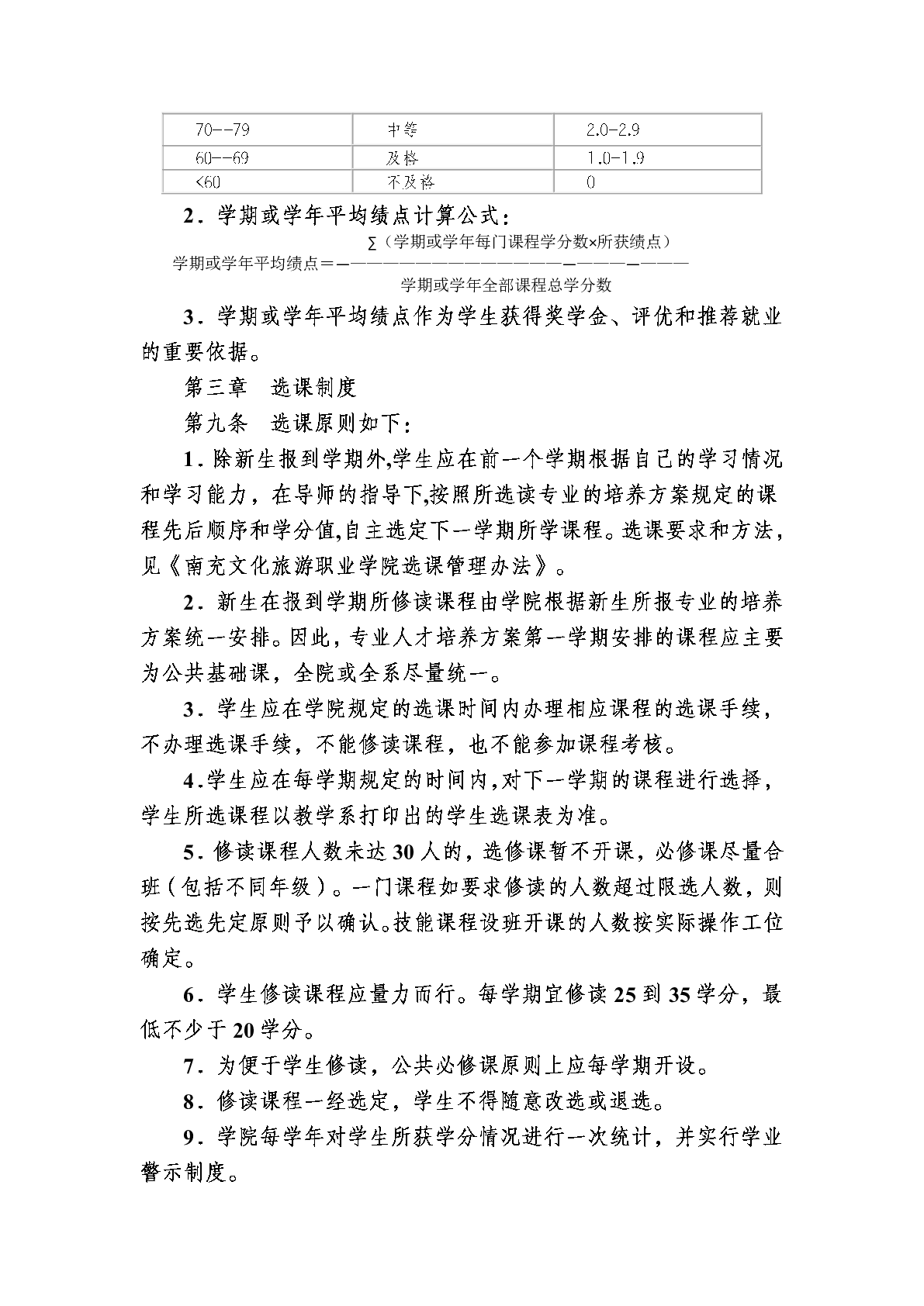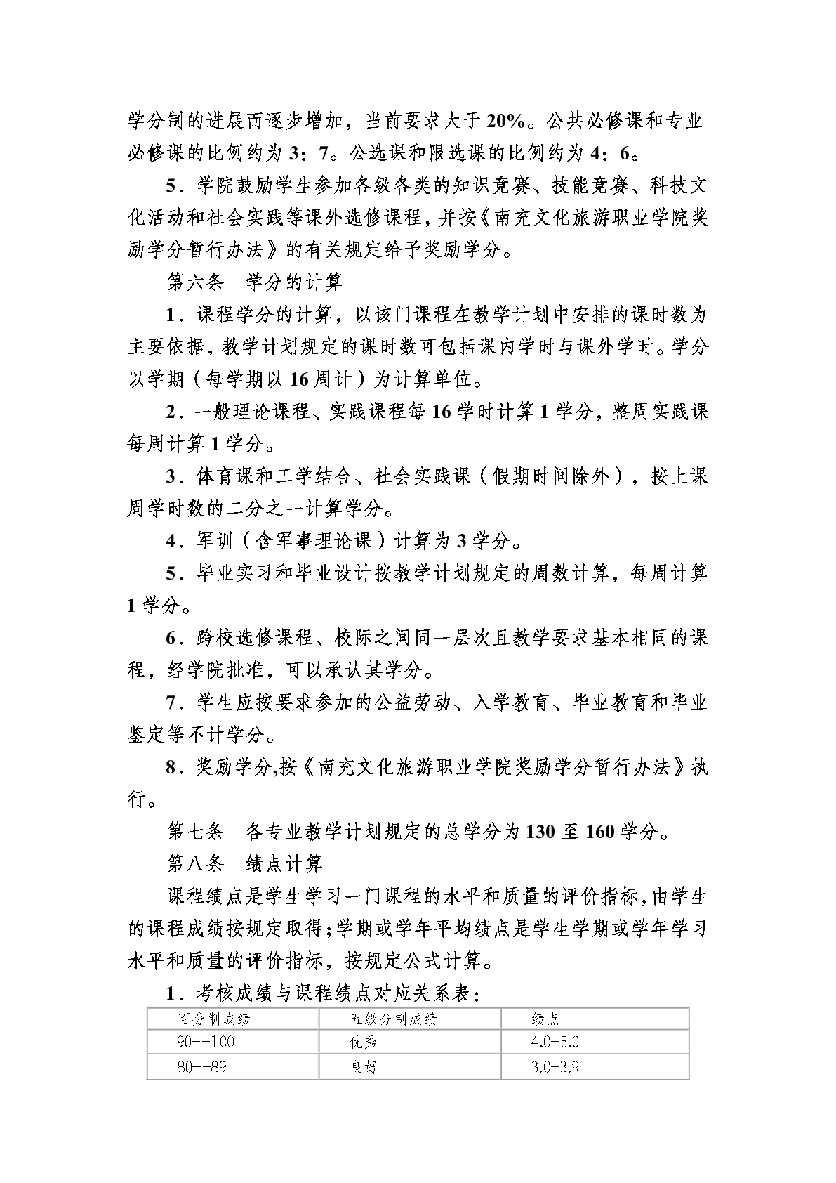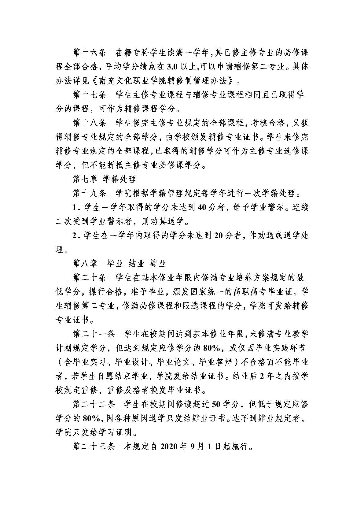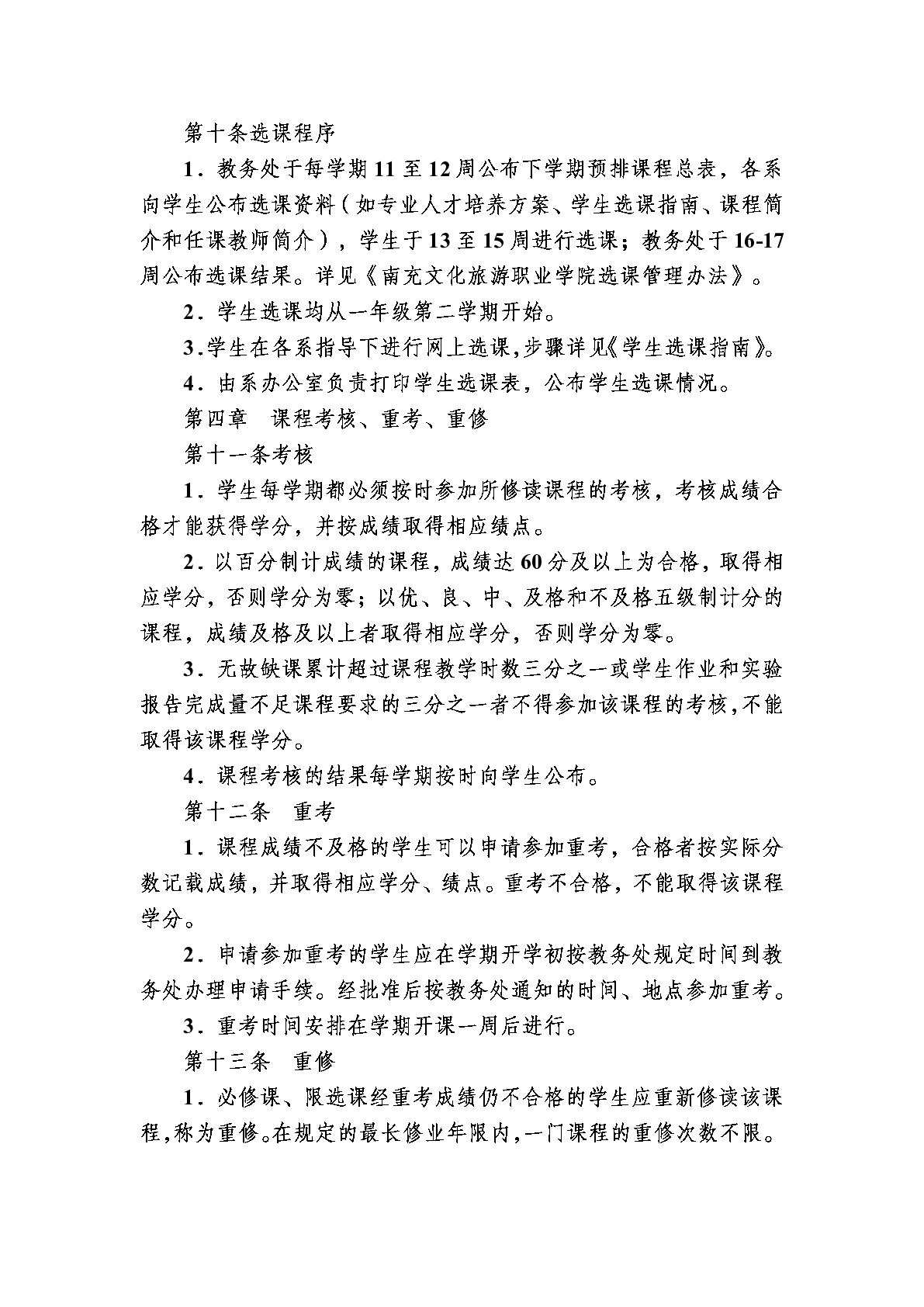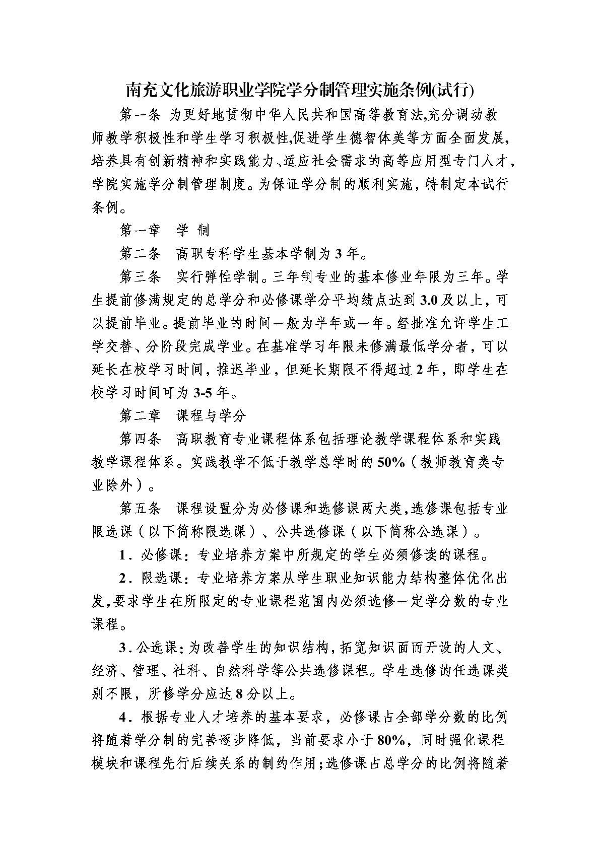 南充文化旅游职业学院学分制管理实施条例(试行)的通知