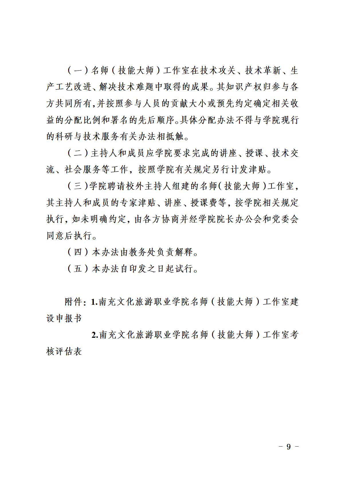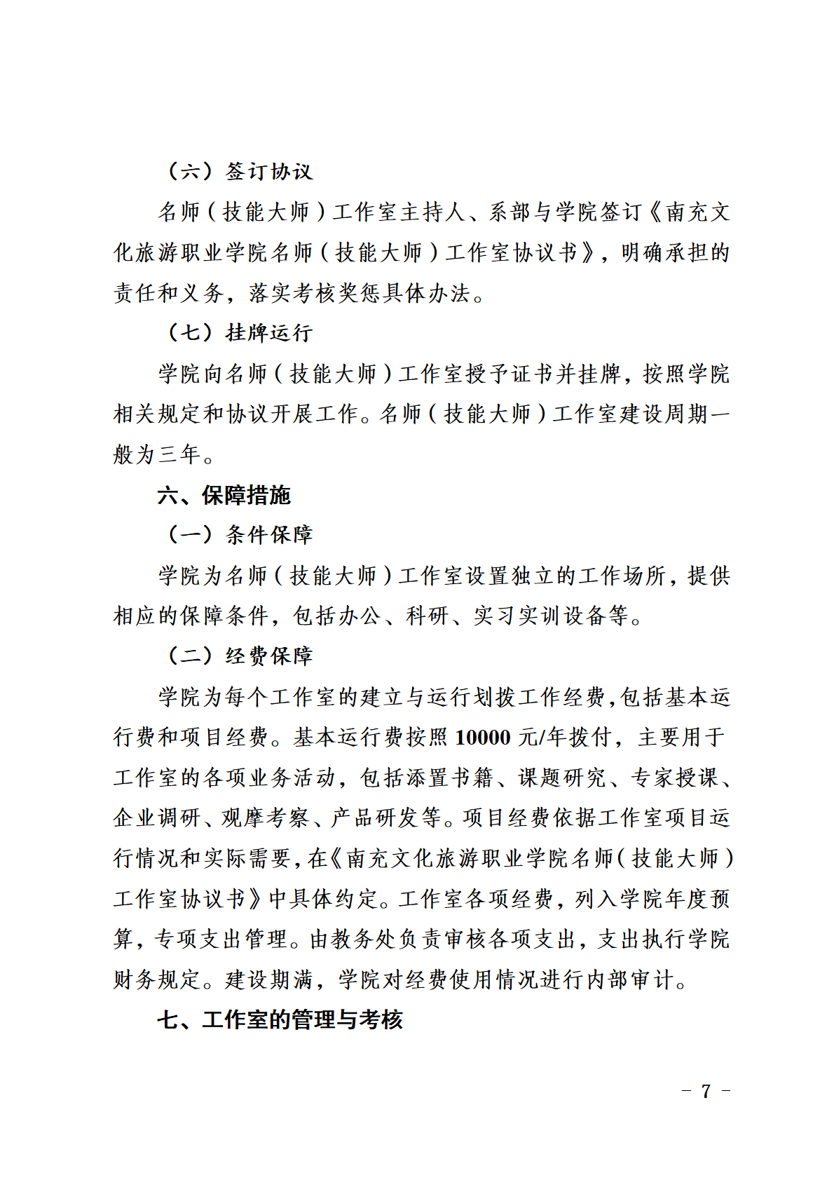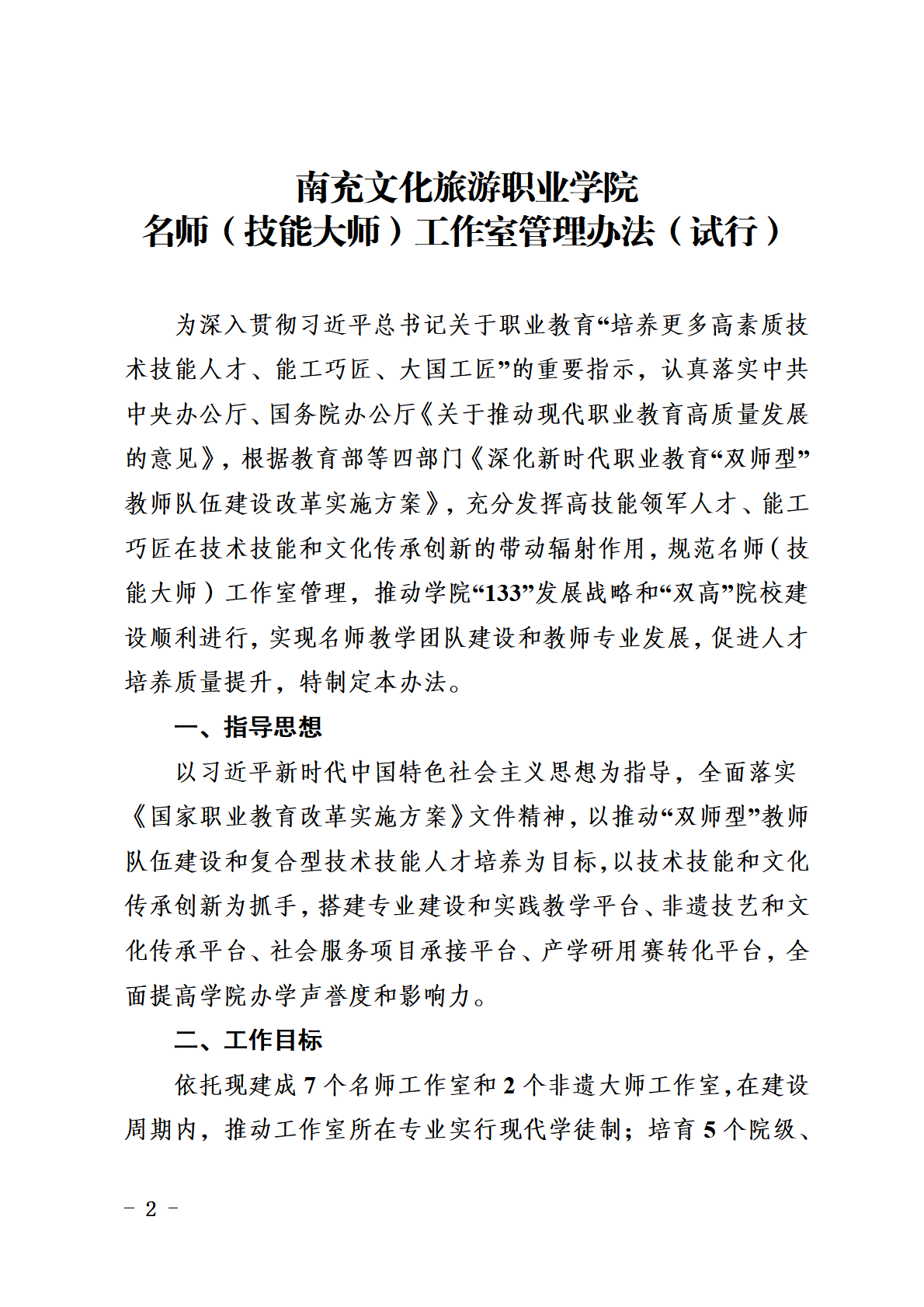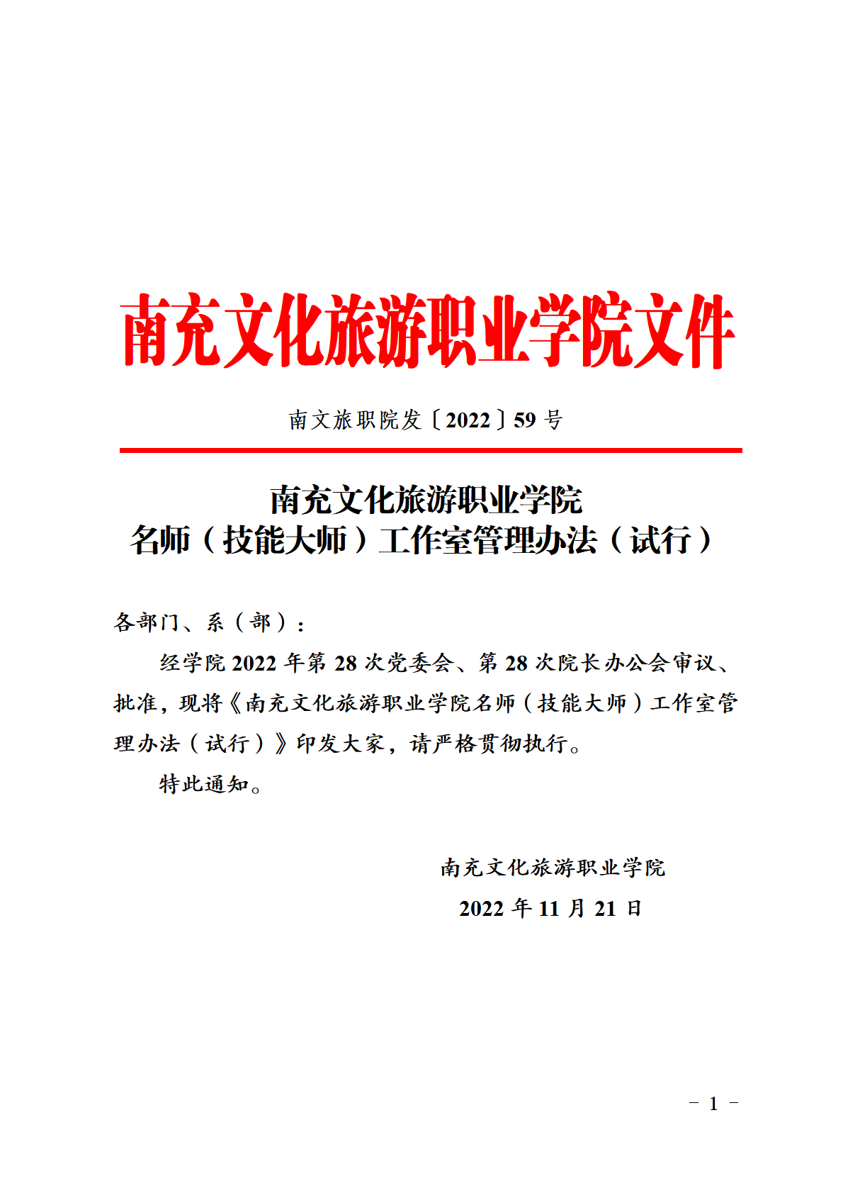 南充文化旅游职业学院名师(技能大师)工作室管理办法(试行)的通知