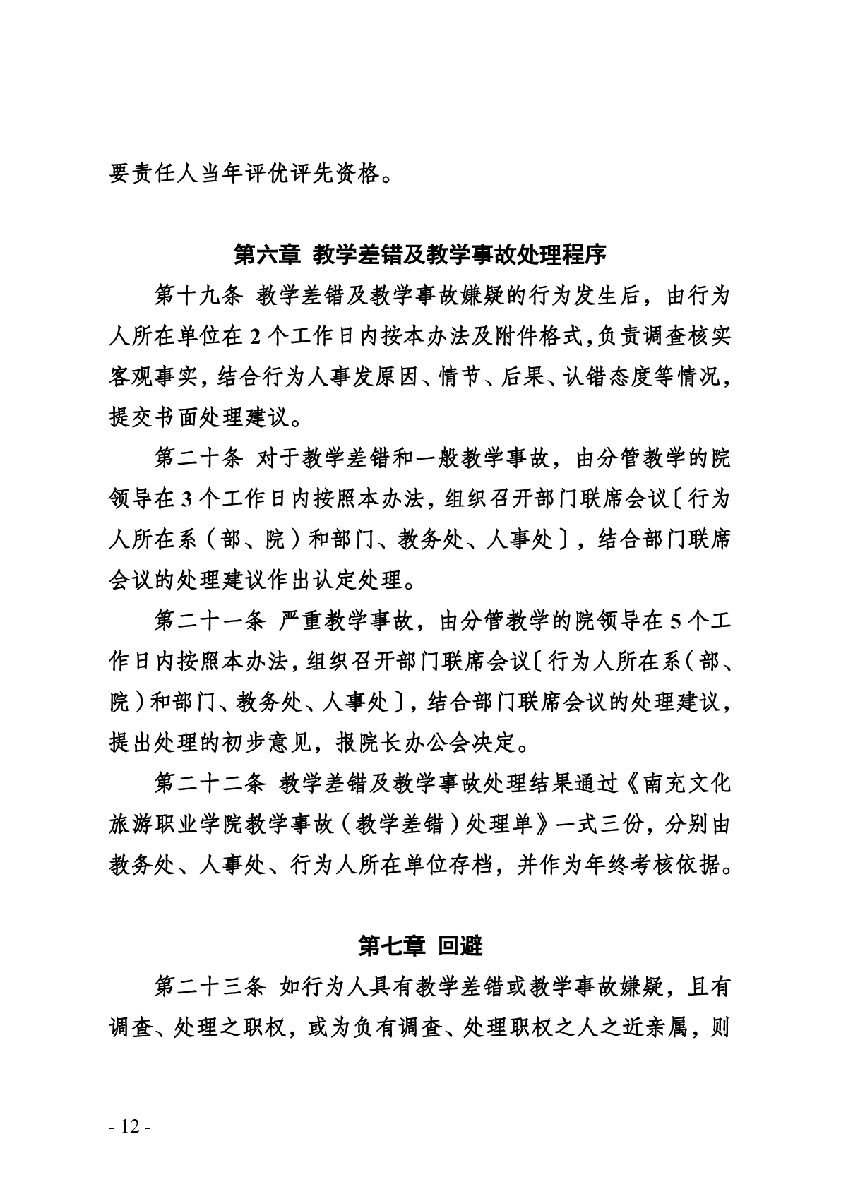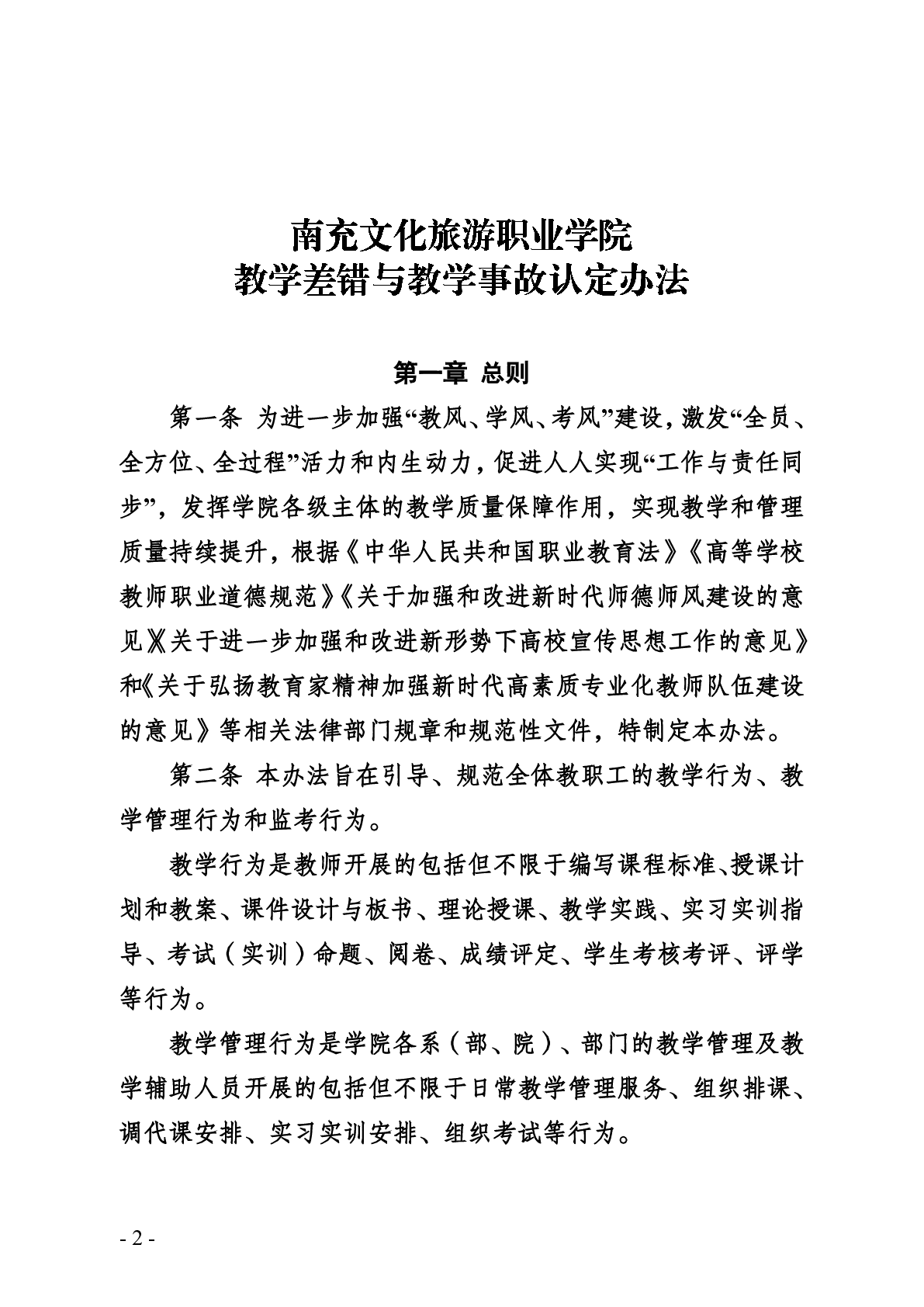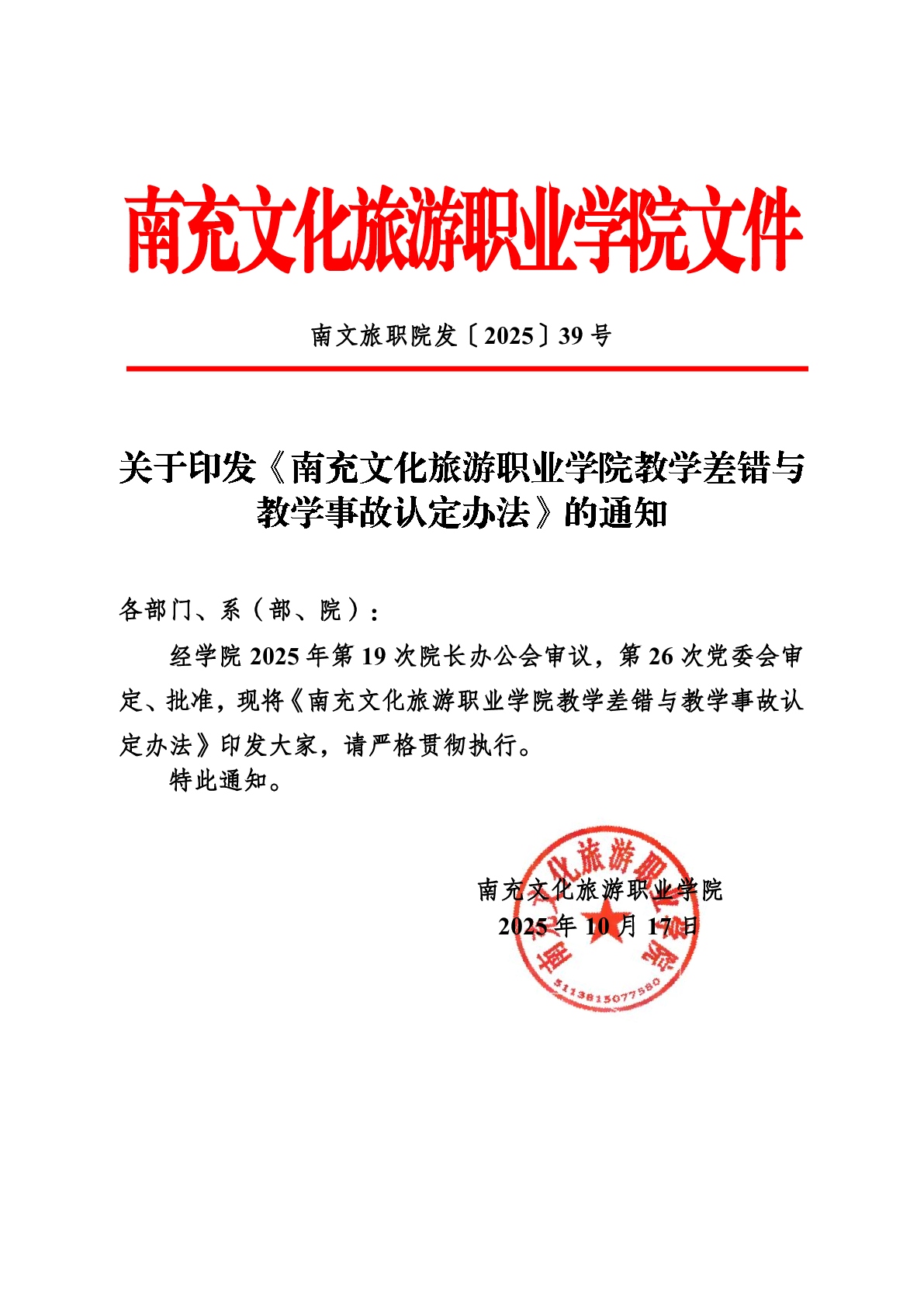 关于印发《南充文化旅游职业学院教学差错与教学事故认定办法》的通知