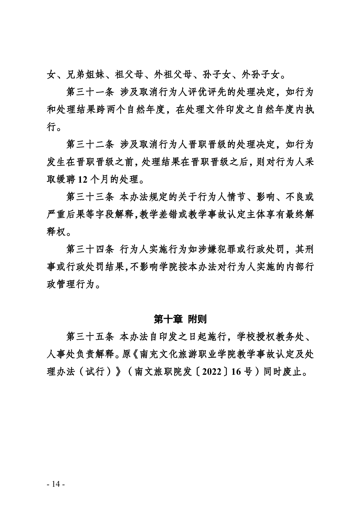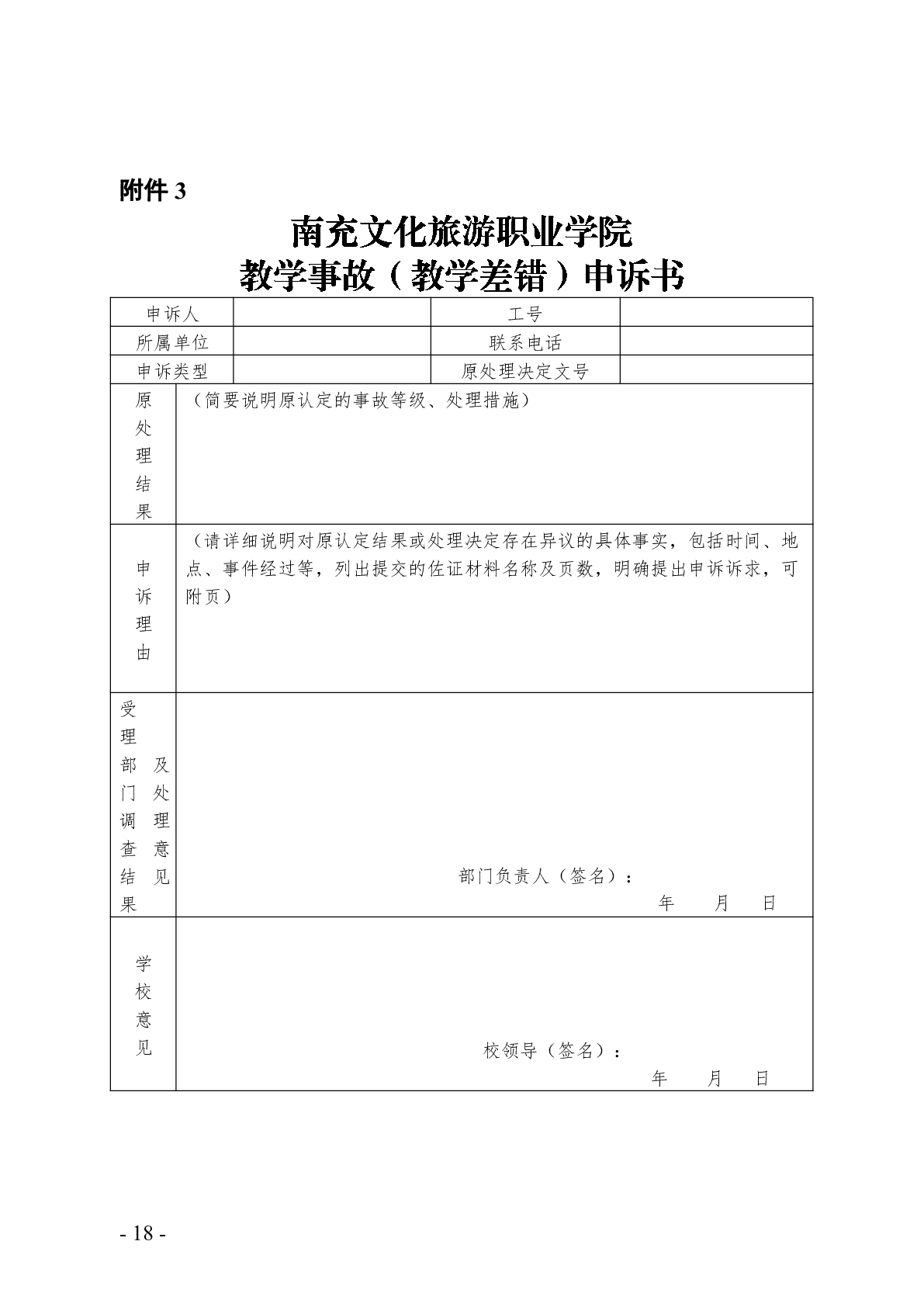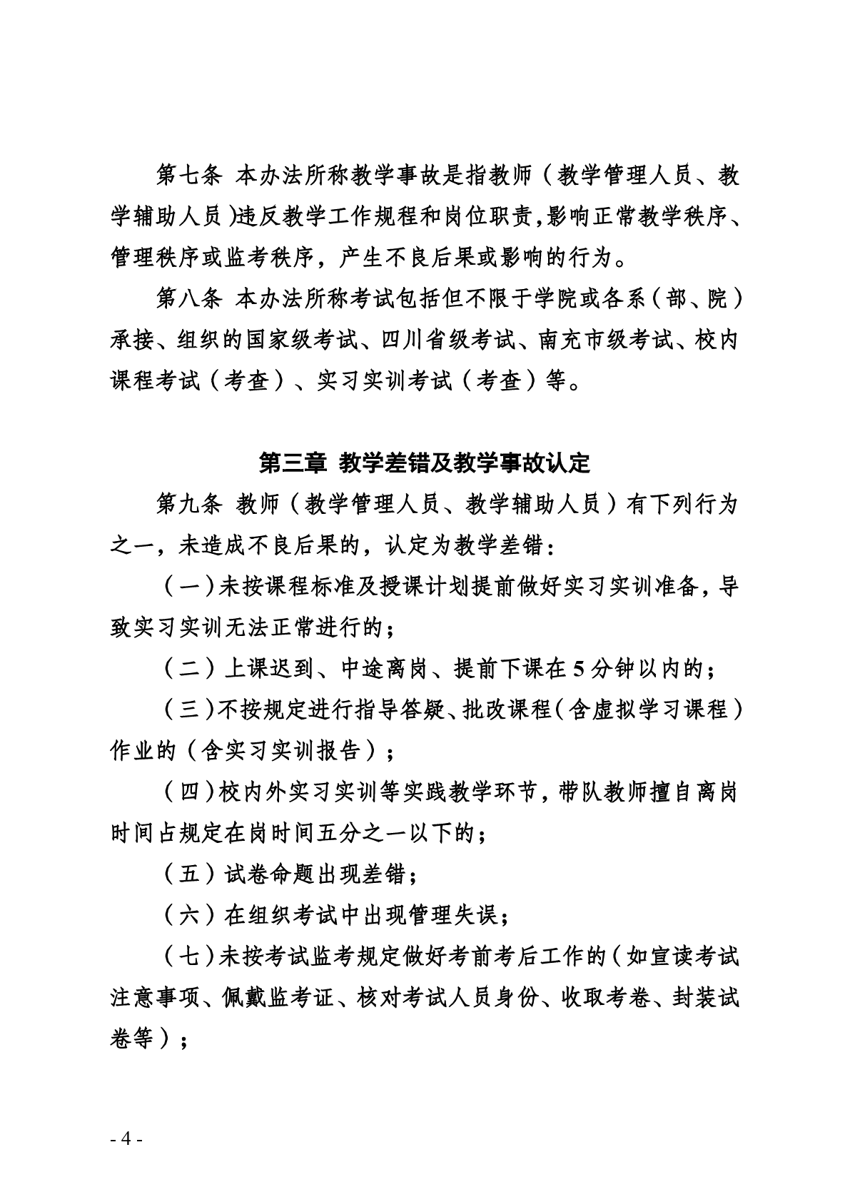 关于印发《南充文化旅游职业学院教学差错与教学事故认定办法》的通知