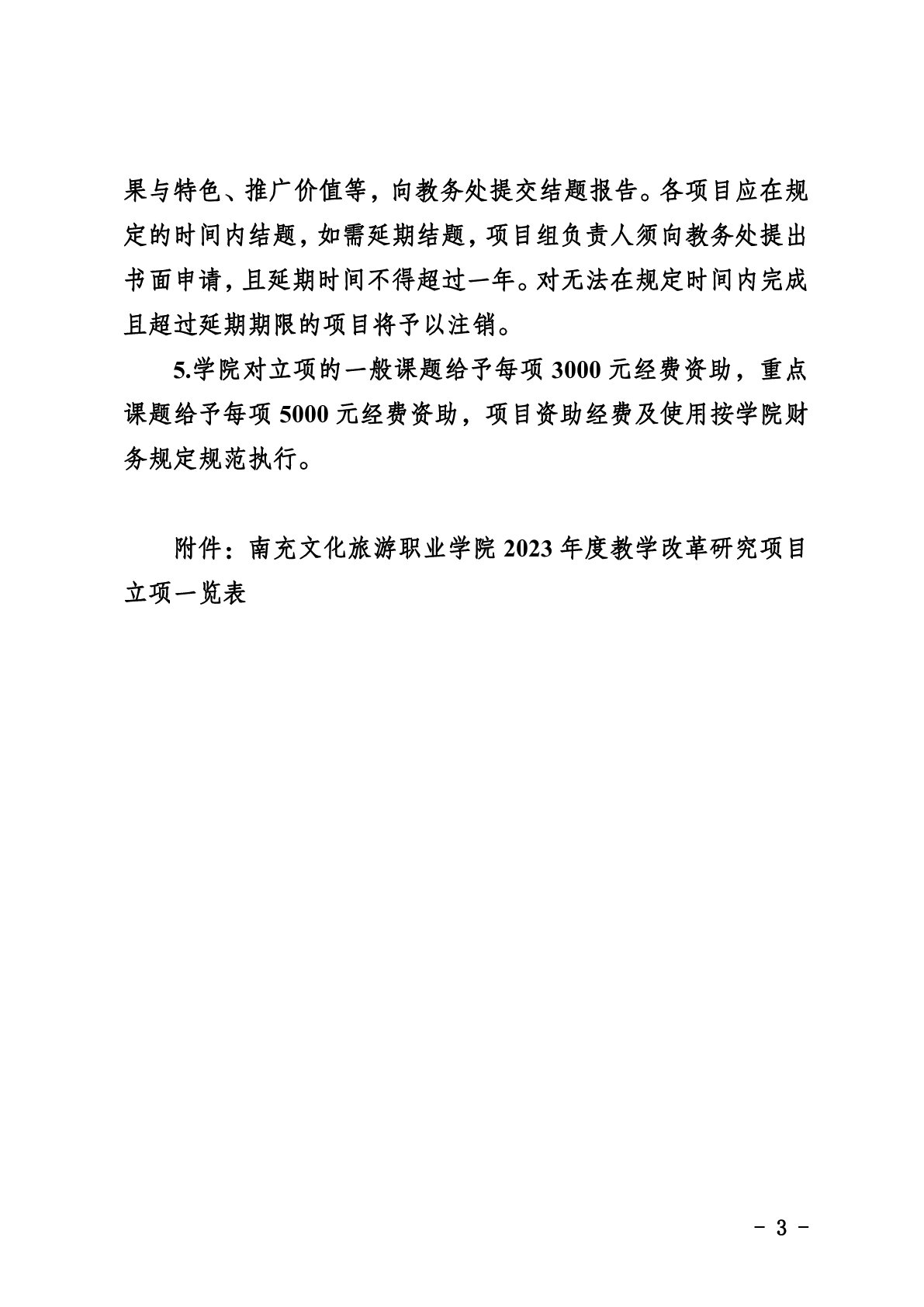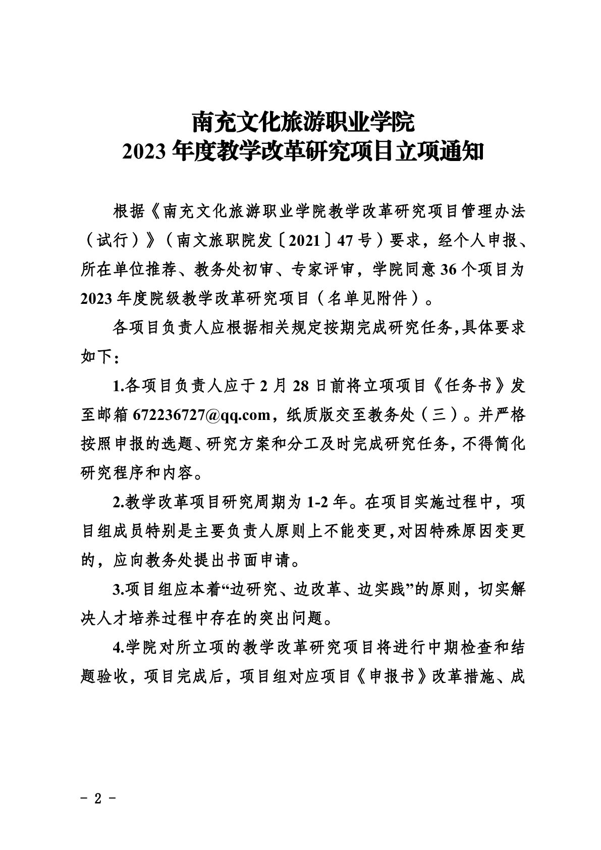 南充文化旅游职业学院2023年度教学改革研究项目立项通知