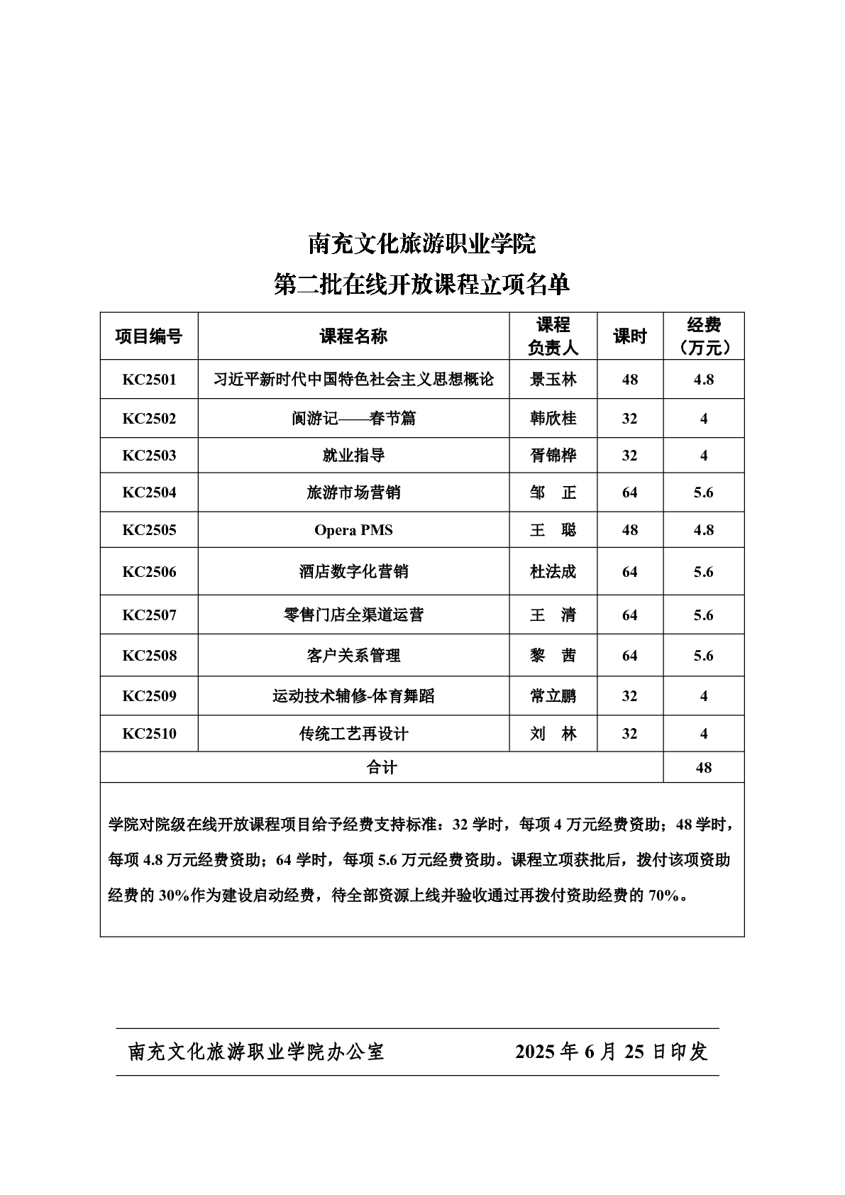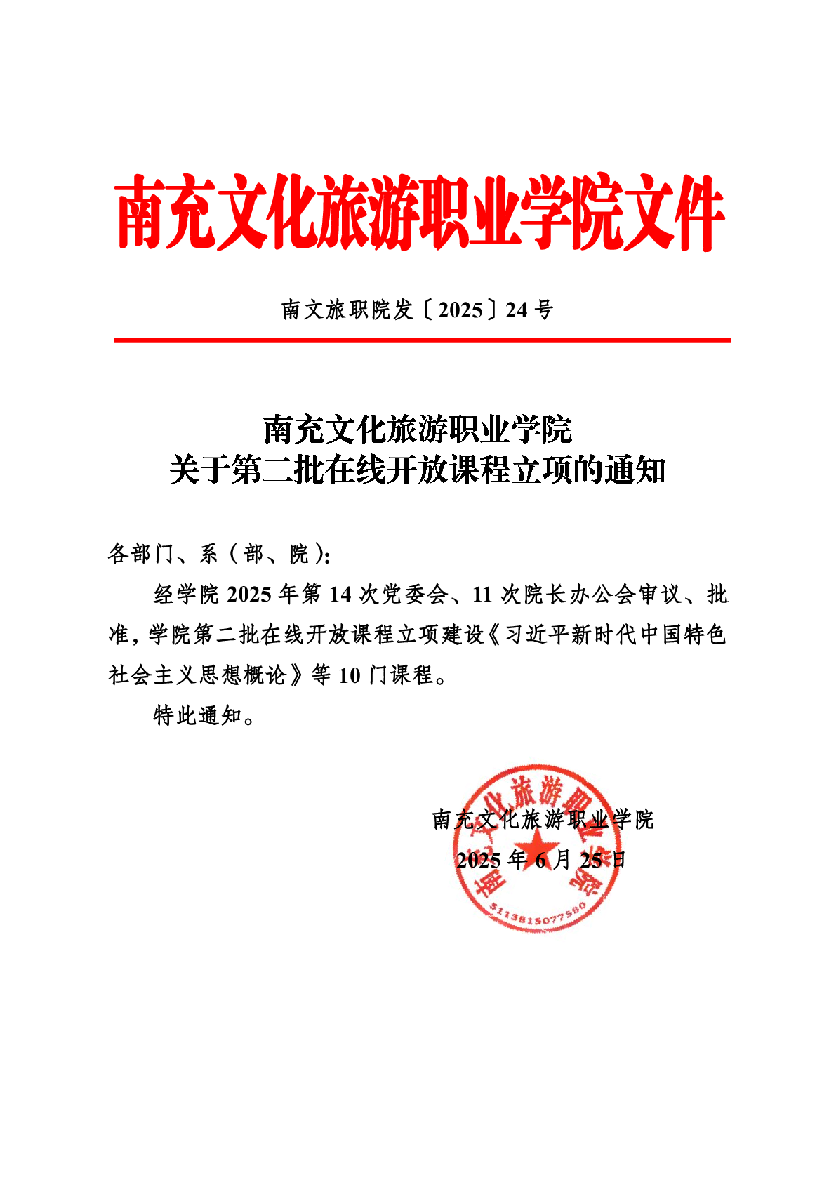 南充文化旅游职业学院关于第二批在线开放课程立项的通知