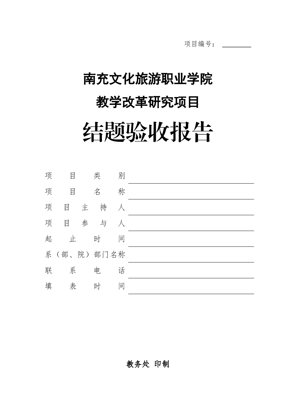 南充文化旅游职业学院教学改革研究项目结题验收报告