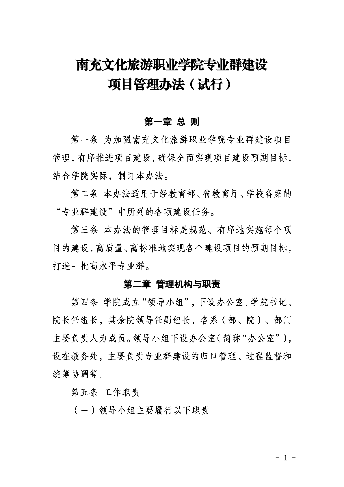 关于印发《南充文化旅游职业学院专业群建设 项目管理办法(试行)》的通知